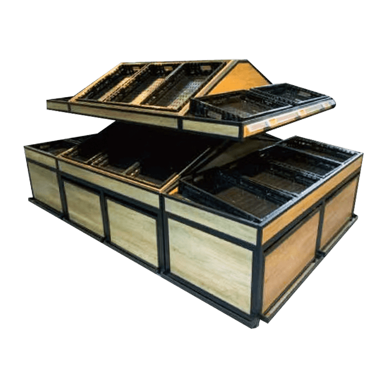 Ce support à fruits et légumes robuste et durable est construit en métal à haute résistance combiné avec du bois de première qualité, offrant une capacité de charge et une durabilité exceptionnelles. Il est conçu pour le stockage de produits à haute fréquence et de gros volumes, ce qui le rend idéal pour les supermarchés et les marchés de produits frais à fort trafic. Sa structure robuste assure une stabilité à long terme sans déformation, même en utilisation continue.